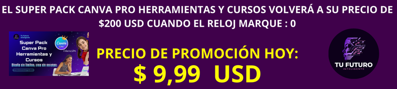 ADQUIERE ESTA INCREIBLE OFERTA POR INTRODUCCIÓN DE EL SUPER PACK CANVA PRO, HERRAMIENTAS Y CURSOS ANTES DE QUE EL RELOJ LLEGUE A CERO